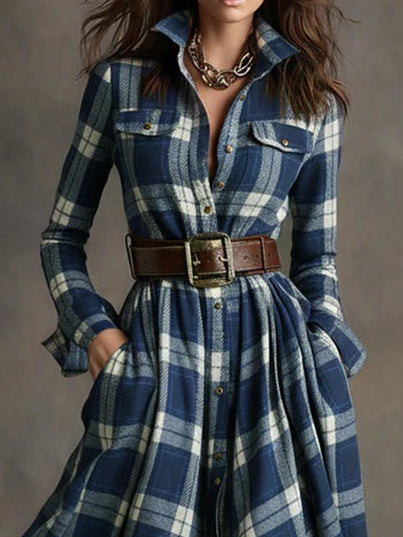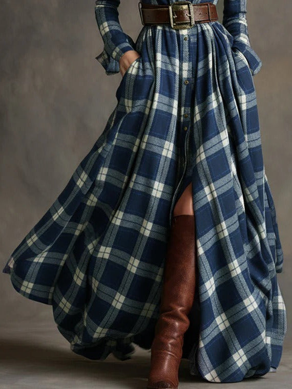 Fiona ❘ Vestido largo de cuadros con cinturón